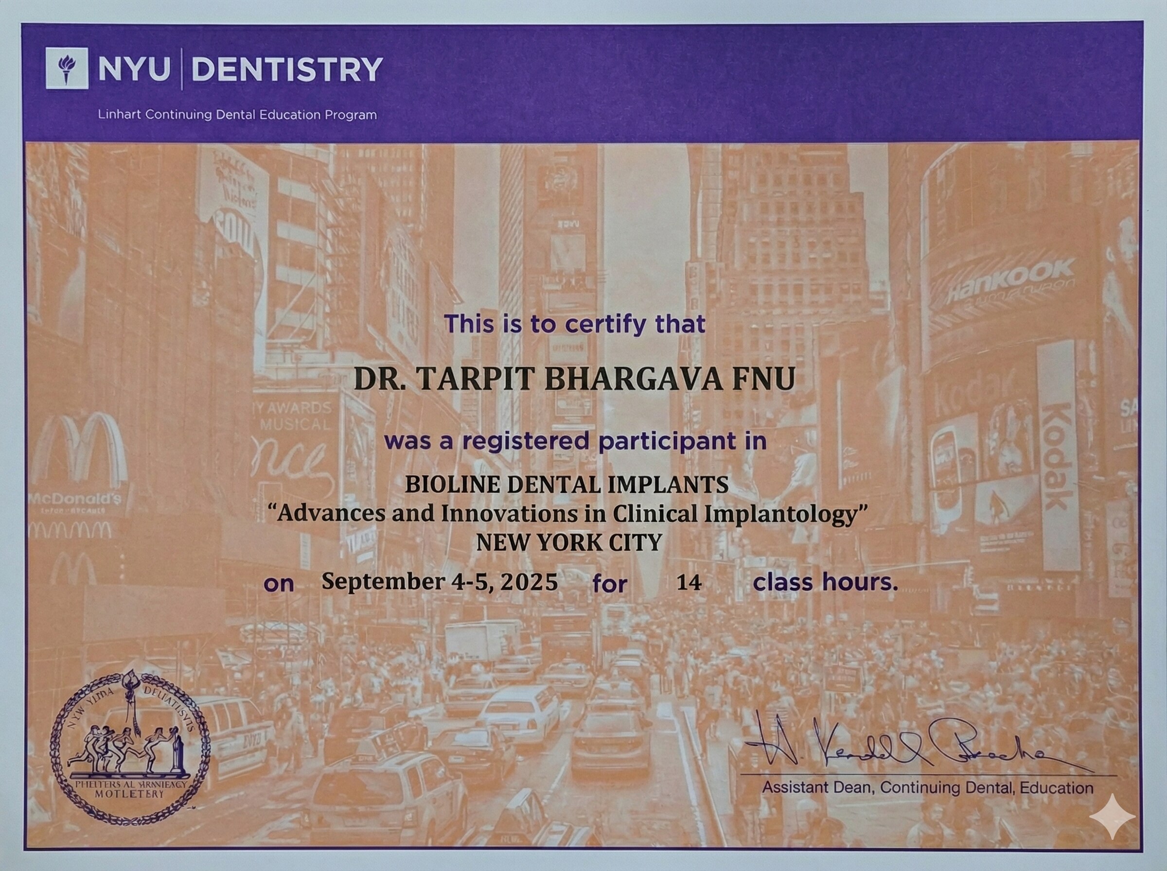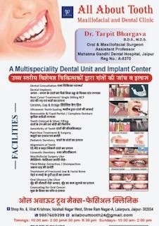 DENTAL AND MAXILLOFACIAL CLINIC. TREATMENT INCLUDES ROOT CANALS IMPLANTS CROWN AND BRIDGES ALIGNERS AND ALL DENTAL PROCEDURES. Dr TARPIT BHARGAVA MDS ORAL AND MAXILLOFACIAL SURGEON HAVING MORE THEN 12 YEARS OF EXPERIENCE.HAVING PERFORMED OVER 2000 SURGERIES IN IMPLANTOLOGY AND TRAUMA WITH THE AIM OF PROVIDING WORLD CLASS TREATMENT.
